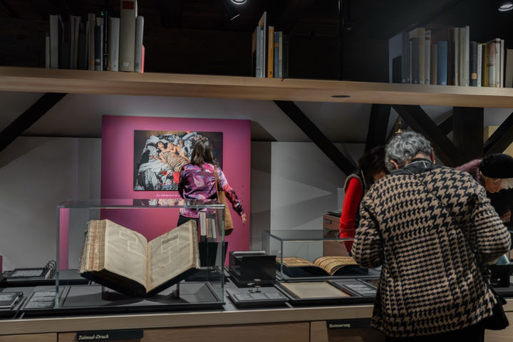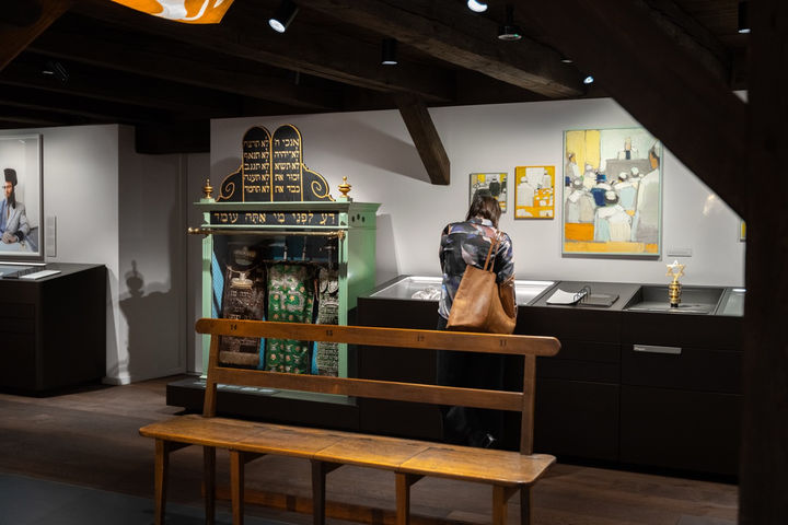 Auf zwei Etagen entfaltet sich ein vielfältiger Einblick in jüdisches Leben: Kunstwerke, Kultobjekte, Archivalia sowie zeitgenössische Kunst bilden den kuratorischen Kern.