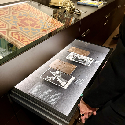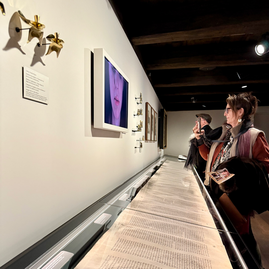 Mediale Projektionen ermöglichen Besucher:innen, zusätzliche Informationen zu den ausgestellten Werken intuitiv abzurufen und vertiefende Inhalte interaktiv zu entdecken.